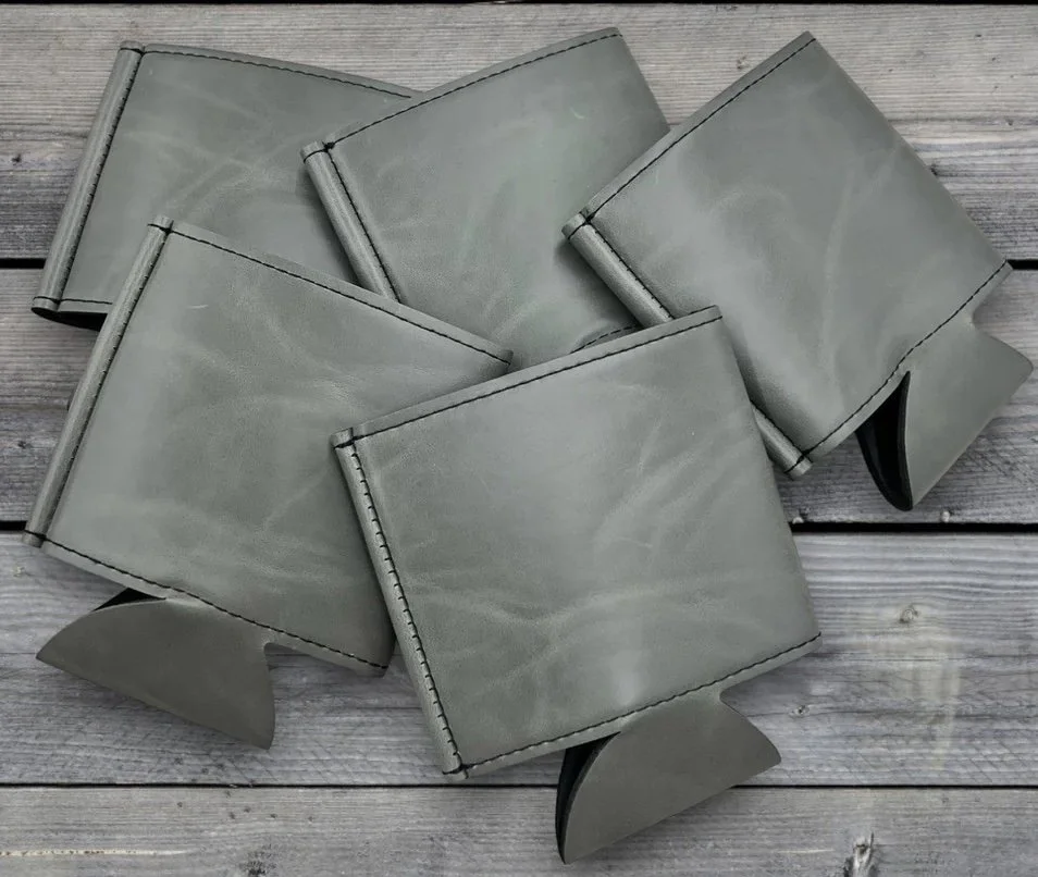 Keep your 12oz. beverages cold while ensuring your hands stay dry with our stylish leatherette can cooler. Crafted with Lonestar Adhesives heritage collection leatherette, this can cooler combines functionality with a touch of elegance.